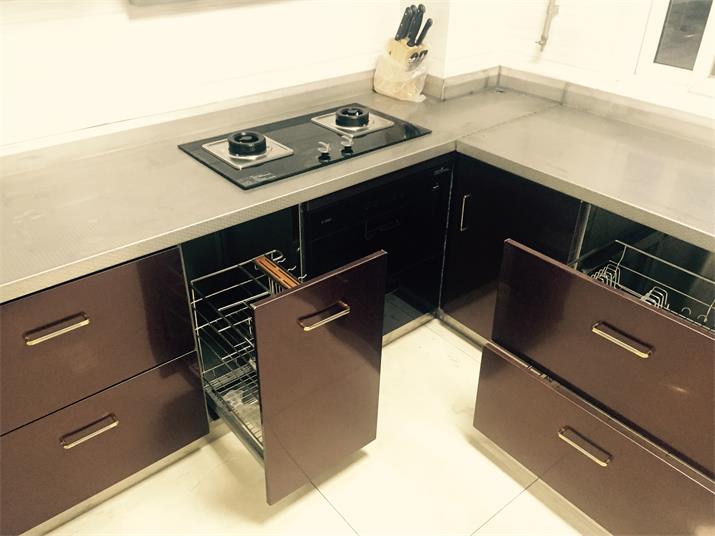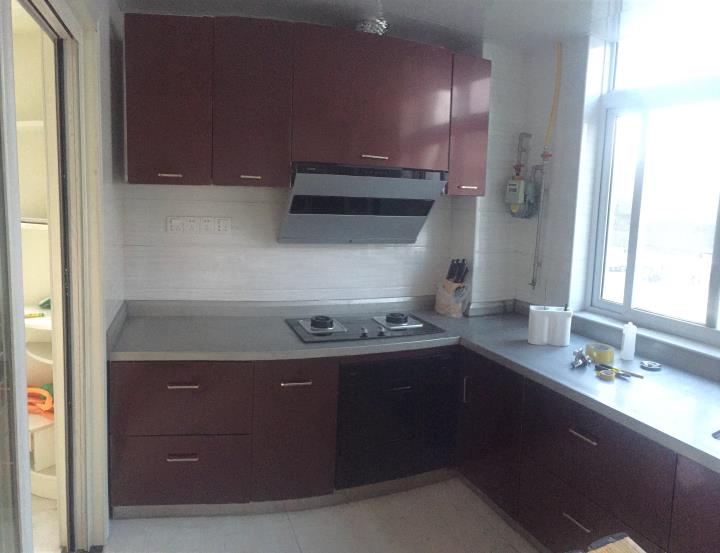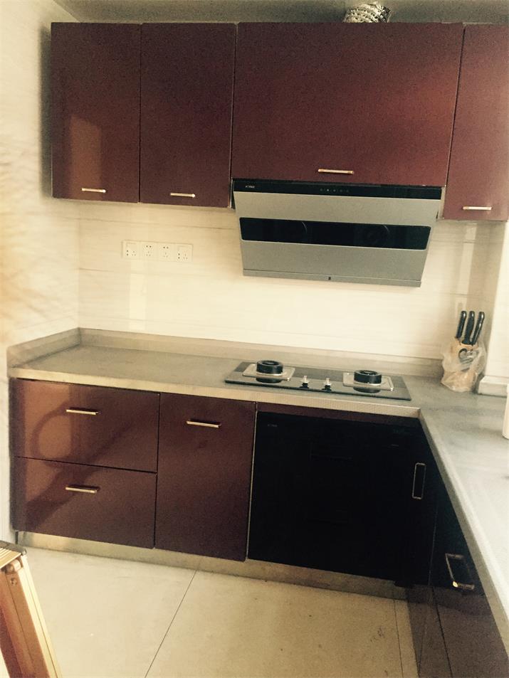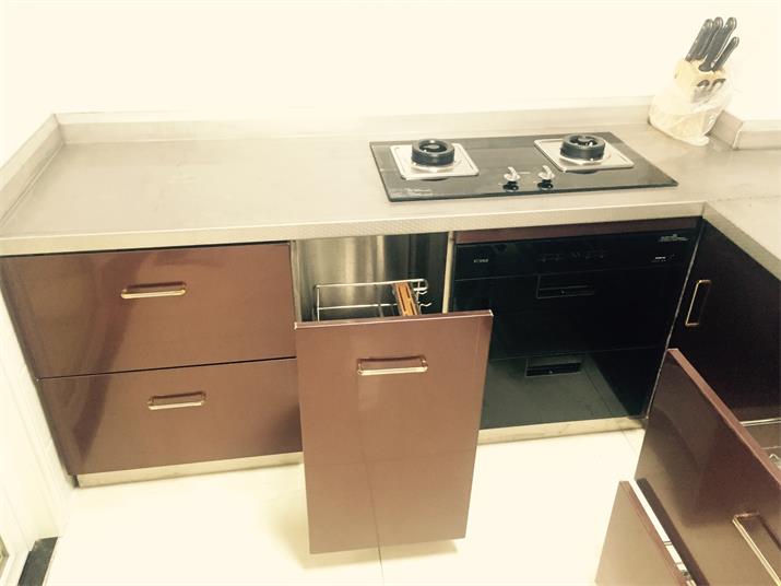 此套酒紅不銹鋼整體櫥柜,臺面板采用實厚2毫米304材質。可以使用100年的不銹鋼整體櫥柜。