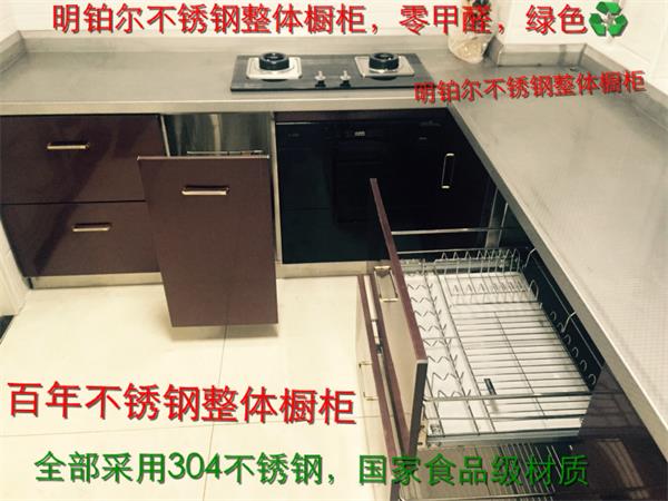 明鉑爾不銹鋼櫥柜,零甲醛,不怕水,不怕火,不變形,可以使用100年,售后無憂,德國五金,304食品級材質(zhì),集成灶一體,為您和家人健康保駕護航!