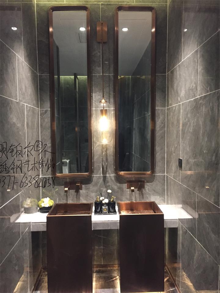 紅古銅藝術洗手池 玻璃鏡