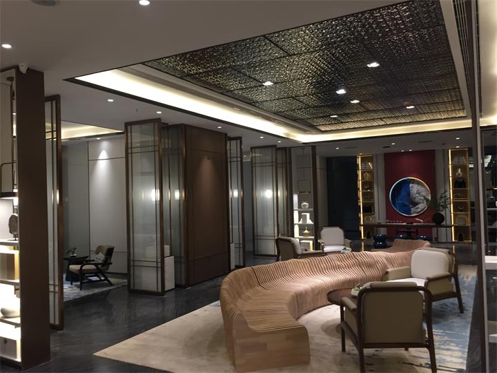明鉑爾?不銹鋼團隊嚴格安裝施工標準制作不銹鋼屏風隔斷,整圓造型,波浪板吊頂制作安裝。