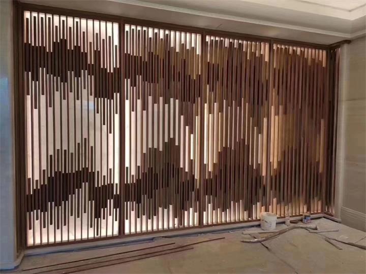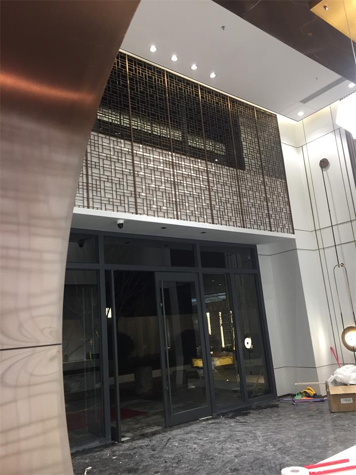 不銹鋼藝術屏風隔斷造型,明鉑爾不銹鋼藝術工程。芒果酒店藝術不銹鋼工程。