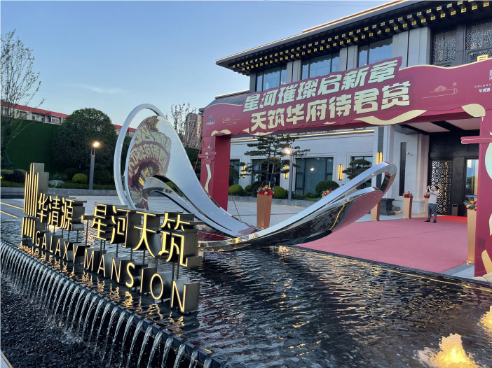 華清源星河天筑大門口不銹鋼字和藝術不銹鋼雕塑