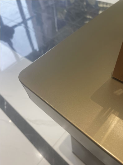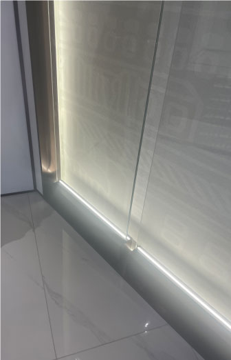 大門整體使用不銹鋼材質(zhì),八個(gè)不銹鋼字耐磨耐曬耐腐蝕,地拉彈簧門上放棄使用傳統(tǒng)拉手,改用定制云紋拉手,使得大門的質(zhì)感更上一層樓。