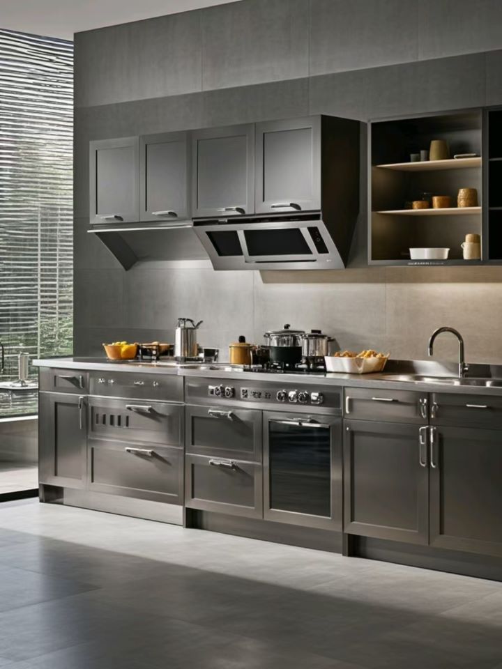 - 結合了不銹鋼櫥柜的耐用性和多種功能模塊,如烤箱、洗碗機、微波爐等嵌入式電器。