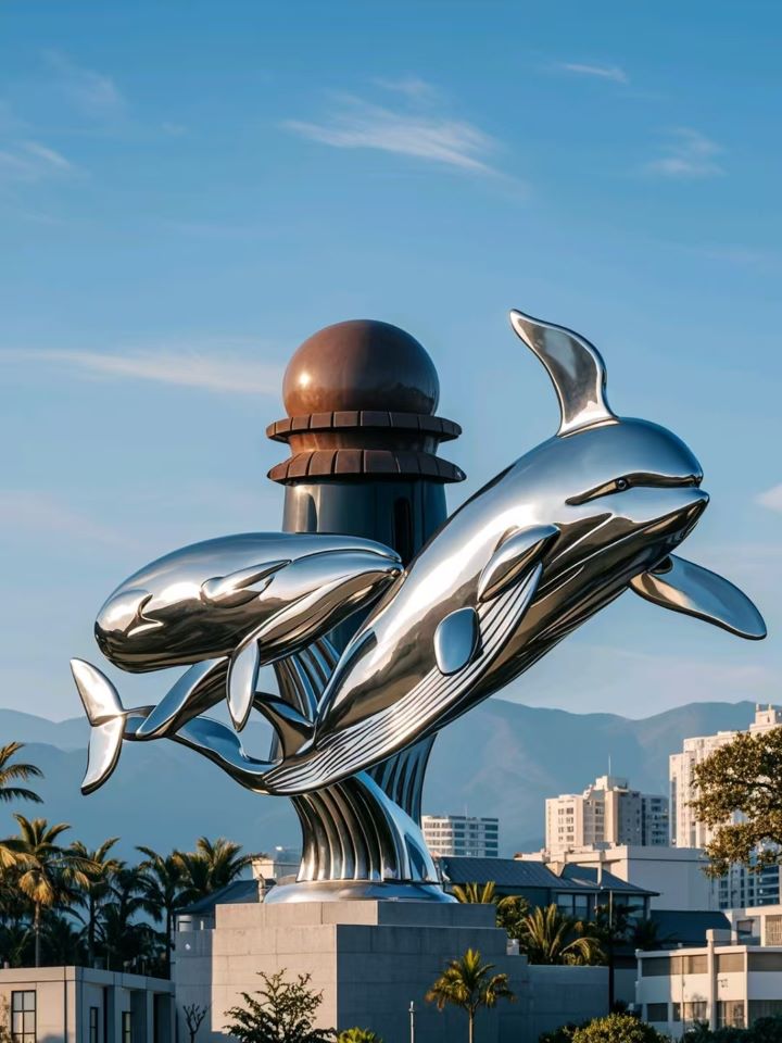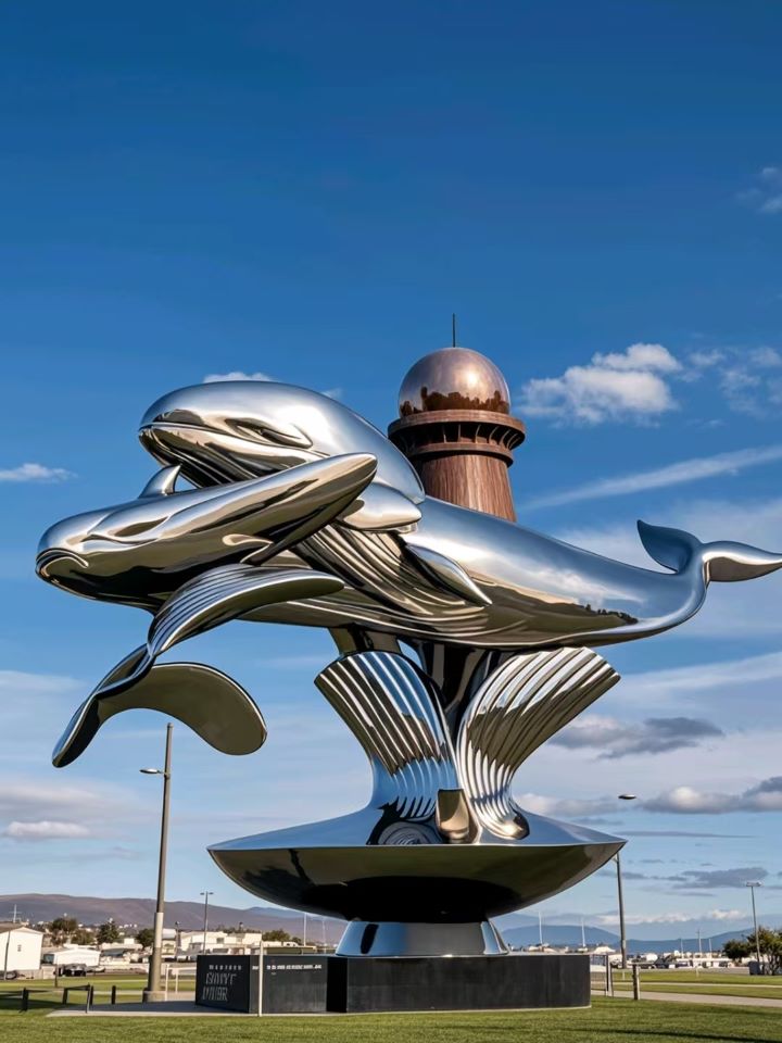 - 公共景觀:在城市的公園、廣場、海濱步道等公共空間中,不銹鋼鯨魚雕塑可以作為標志性的景觀元素,吸引人們的目光,為城市增添藝術氣息和文化氛圍。