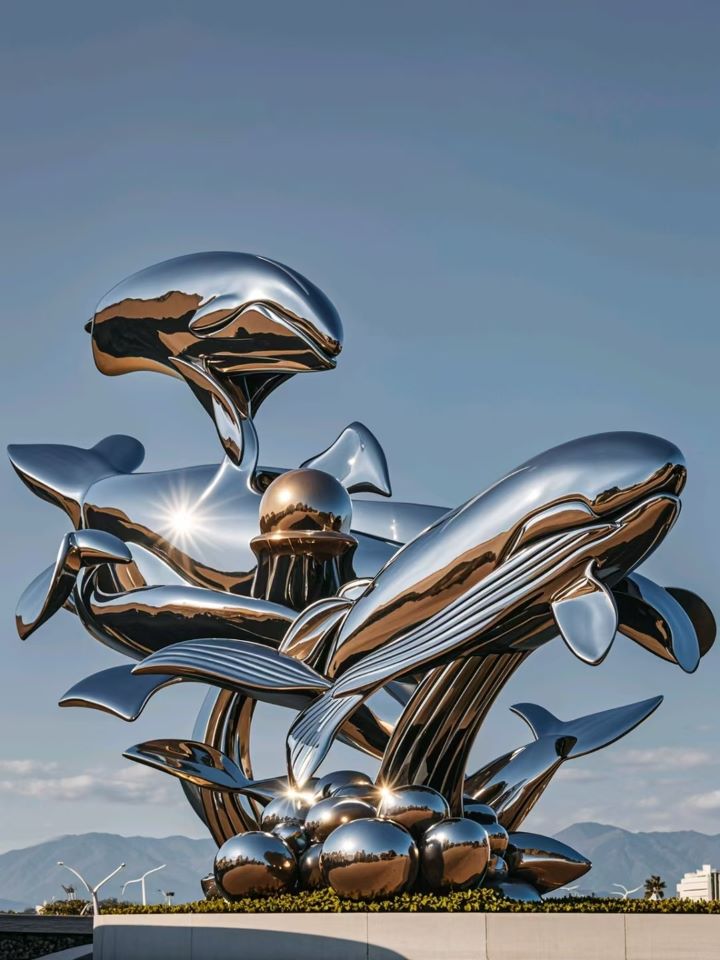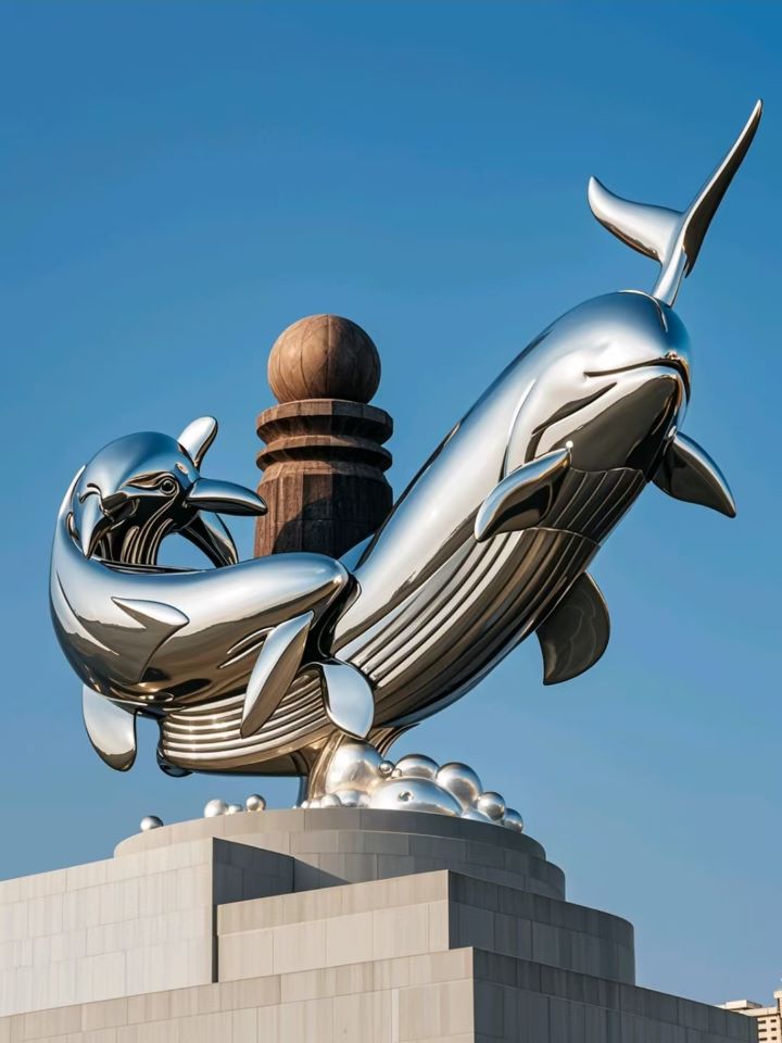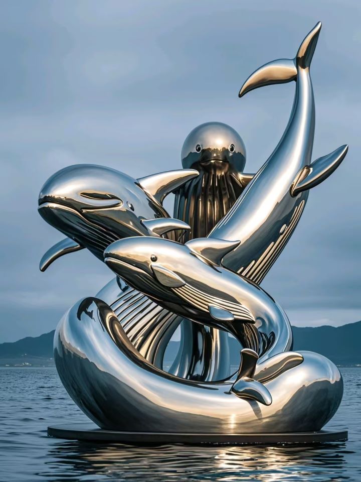 - 藝術價值:作為一件藝術品,不銹鋼鯨魚造型雕塑具有較高的藝術價值。它不僅展現了雕塑師的精湛技藝和藝術創造力,還通過獨特的造型和材質,為人們