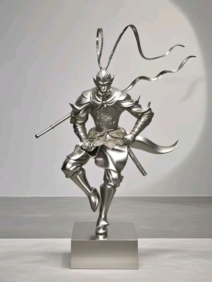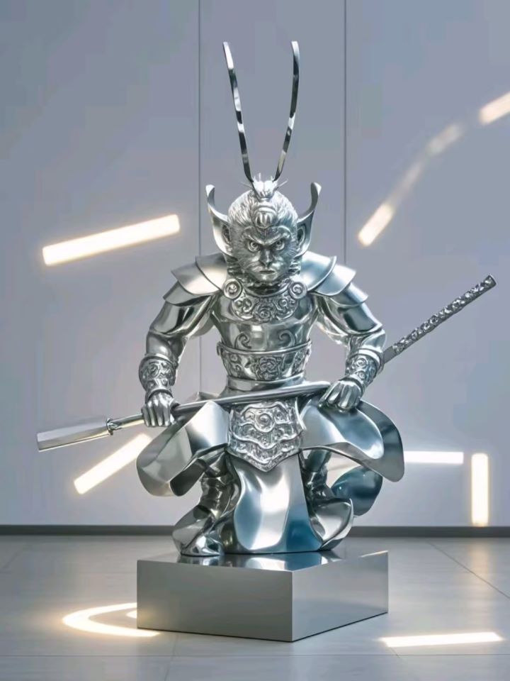 該雕塑造型上,多以《西游記》中孫悟空的經(jīng)典形象為藍(lán)本,如齊天大圣、行者等形象,部分還會(huì)結(jié)合現(xiàn)代藝術(shù)風(fēng)格