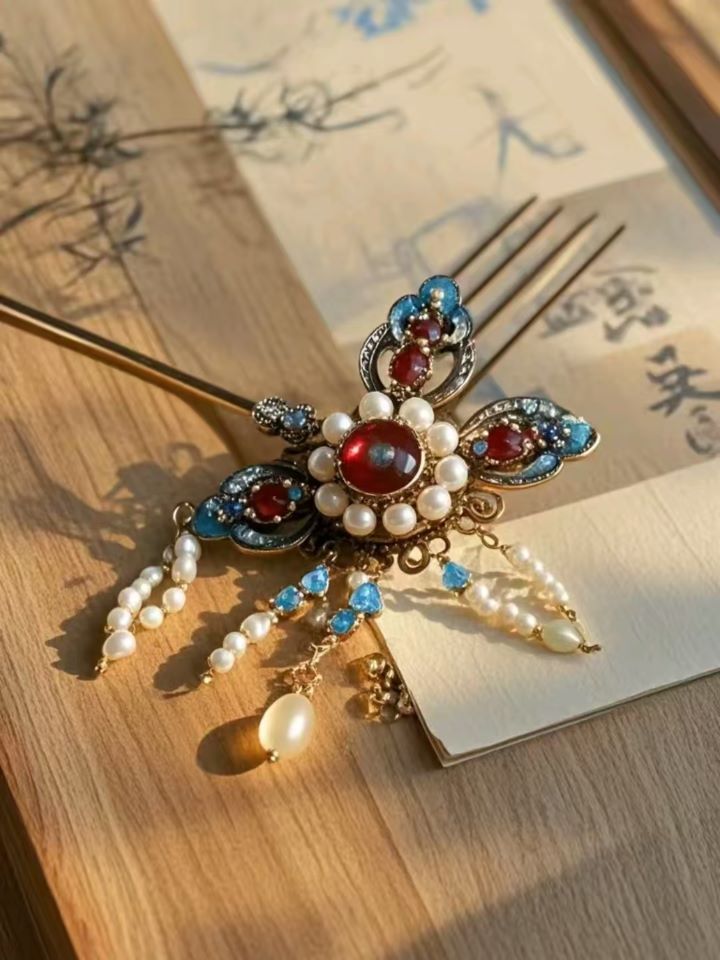 華,散發(fā)著柔和溫潤的光澤。此簪無論是斜插于發(fā)間,伴青絲搖曳,彰顯東方女性的溫婉與優(yōu)雅,還是作為收藏珍品,置于錦盒之中,都承載著千年古風(fēng)的獨(dú)特魅力,讓人不禁沉醉于那如夢(mèng)似幻的古典情境之中。